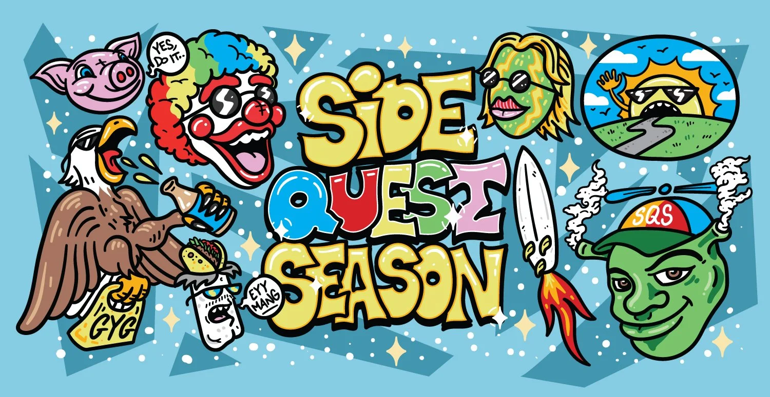 Graphic pack for Sydney brand Side Quest Season including hand drawn type - get questy!