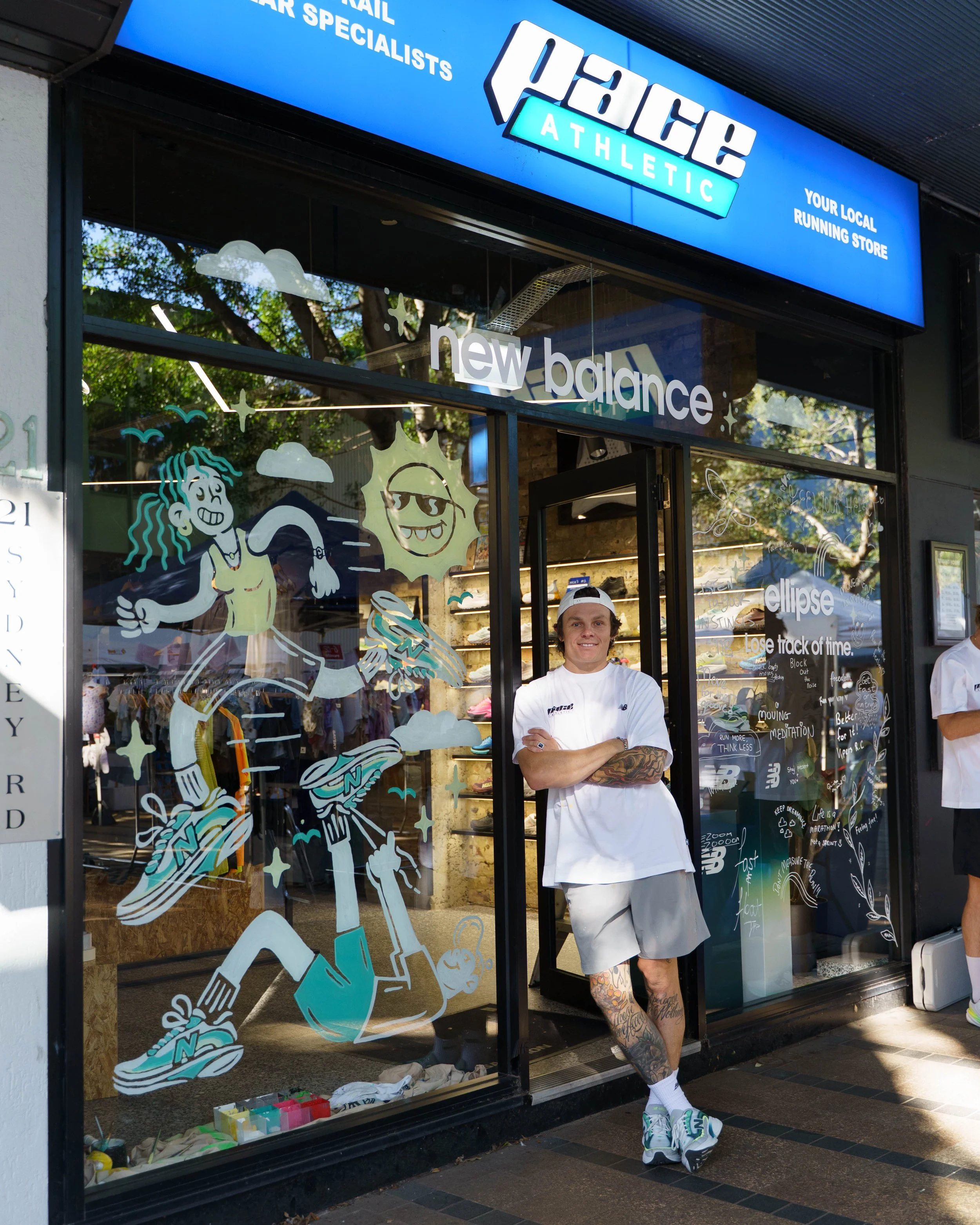 Stoked to have wrapped the @newbalancerunning Lose Track of Time campaign with a live art installation at @paceathletic Manly. We also made a run of tees for crew who showed up using the graphic in the mural.
